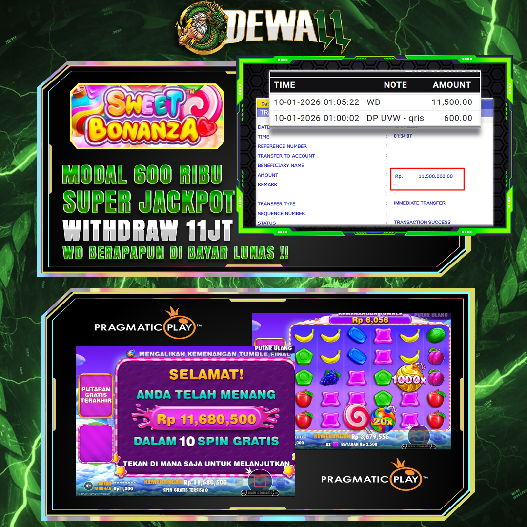 Gabung bersama DEWA11 dan Dapatkan kesempatan jackpot sensasional dalam 15 menit seperti bukti banner ini bukan sekedar janji hanya Depo 600k Withdraw 11,5 juta hari ini.